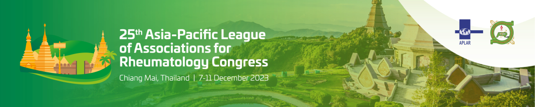 2023亚太风湿病学大会(APLAR) 第25届亚太风湿病学大会(APLAR)于2023年12月7日至12月11日在泰国清迈国际会展中心顺利举行。亚太风湿病学大会是研讨风湿病学领域前沿科学研究和临床信息的重要活动,会议为风湿病学家、内科医生、骨科医生、临床免疫学家、物理学家、物理和职业治疗师、儿科医生和研究人员给予了一个最佳的讨论该地区风湿免疫病诊断、治疗及管理最新进展的平台。 亚太风湿病协会联盟(APLAR)于1963年在悉尼创建,APLAR隶属于ILAR(国际风湿病协会联合会)。APLAR由亚洲太平洋地区各国的风湿病学学会组成,现包括30个国家风湿病协会成员,APLAR所覆盖的地理区域从大洋洲的新西兰不断延伸到中东的约旦,顺利获得会员协会代表25,000多名风湿病学家,是亚太地区最具影响力的风湿病学专业组织之一。 APLAR致力于在亚太地区宣传和促进风湿病学科的开展工作。APLAR出版“APLAR风湿病学”杂志,并每年组织亚太地区最具影响力的风湿病学大会。